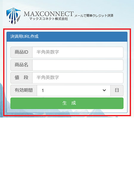 マックスコネクトのSMS電話決済は、クレジット決済用URLをSMSで送付することで、お支払いをご案内するクレジットカード決済サービスです。この決済サービスは一つの画面でURL生成から決済URL送付まで簡単に行うことが可能なサービスです。