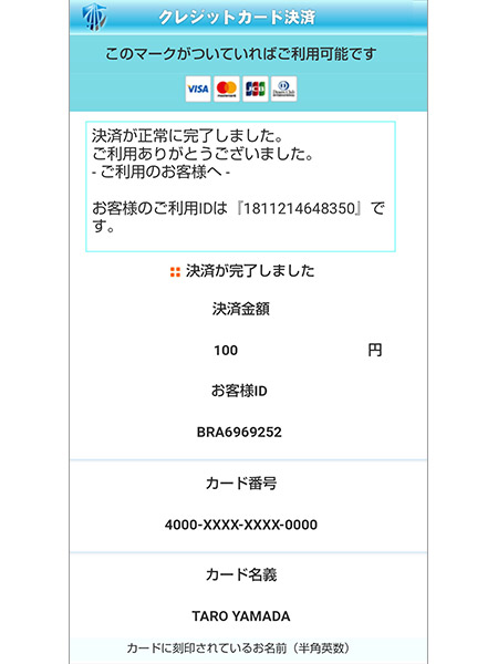 ショートメッセージから決済画面アクセス頂き、お客様がカード情報を入力し決済実行を押して頂くと、決済が正常に実行されます。