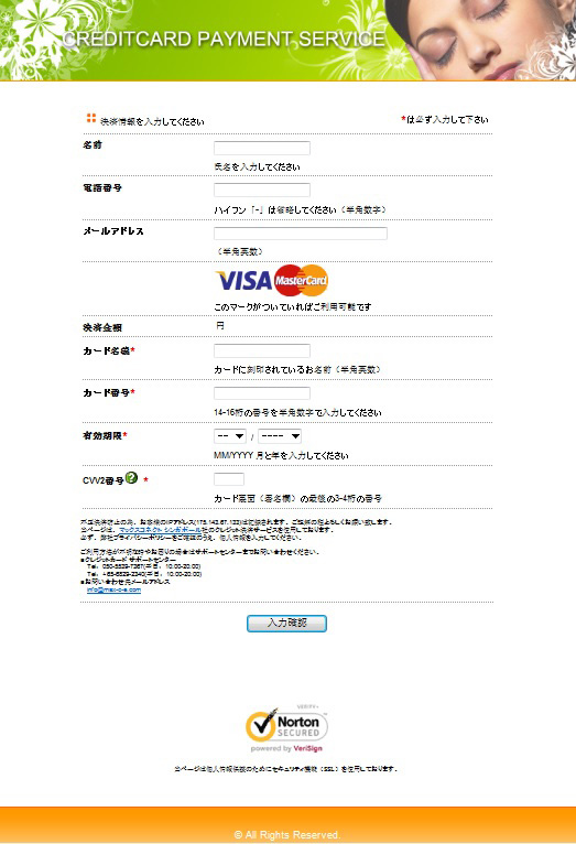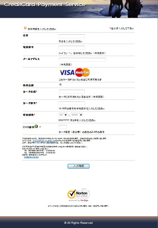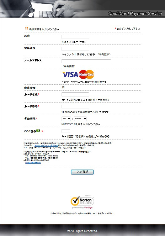 弊社では、各サイト様毎にヘッダーの画像の入れ替えが可能でございます。事例としては、サイト様のトップの画像を入れたり、サイト様のロゴを入れることにで、よりウェブサイトとの一体感が生まれ、ユーザー様も安心してクレジット決済を実行できます。一見些細なサービスのようですが、クレジット決済を実行するにあたり、お客様のモチベーションを維持しながら、”安心”して商品を購入してもらうということは、重要であると考えております。